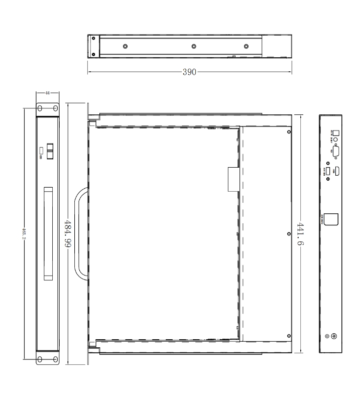 安裝機(jī)柜 | 600-1040mm(標(biāo)準(zhǔn)掛耳長度:400 MM;650MM / 750MM可定制 ); 600MM機(jī)柜可定制90度彎頭線 | |