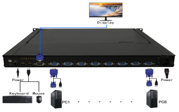 l 可級(jí)聯(lián)多臺(tái)設(shè)備, 4口可以連接128臺(tái)電腦統(tǒng)一操作