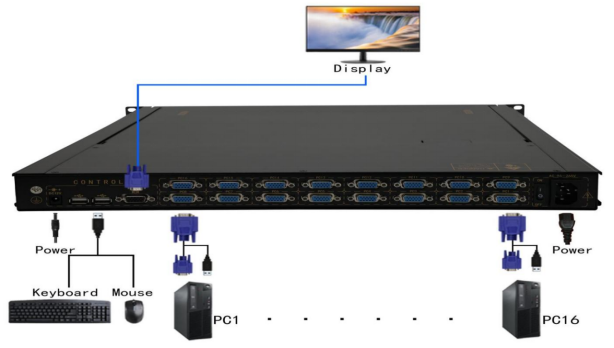 l 可級(jí)聯(lián)多臺(tái)設(shè)備, 16口可以連接256臺(tái)電腦統(tǒng)一操作