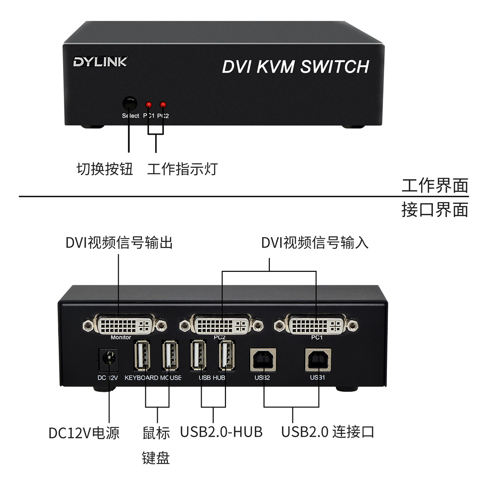 電腦端連接端口 | 2xDVI母頭; 2x USB Type B 母頭; | 4xDVI母頭; 4x USB Type B 母頭; | 8xDVI母頭; 8x USB Type B 母頭; |