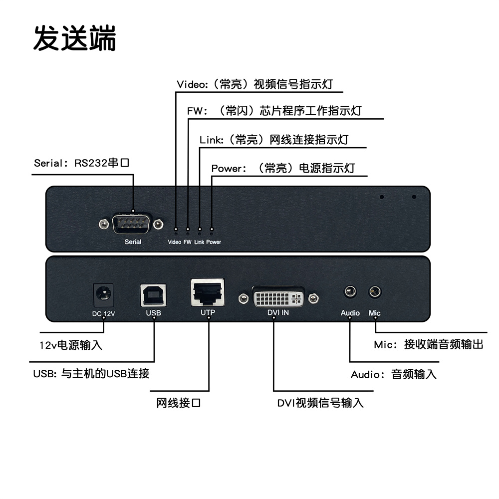 5、發(fā)送端與接收端通過指示燈顯示連接狀態(tài);