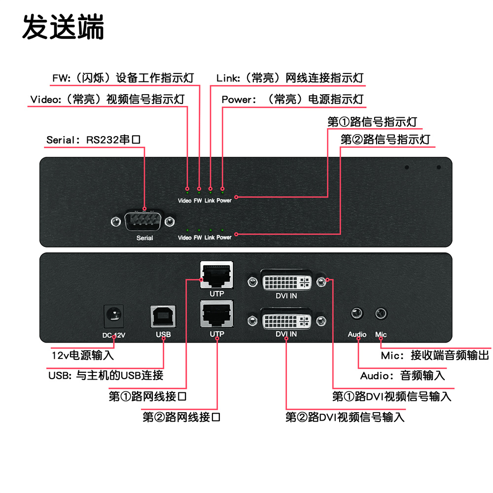5、發(fā)送端與接收端通過指示燈顯示連接狀態(tài);