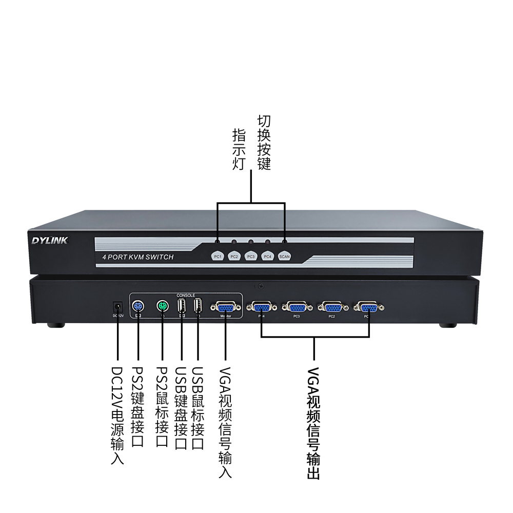 KVM USB 切換器4進1出,一套鍵鼠和顯示器可以控制4臺VGA電腦設備,支持機架式安裝,2個PS2鍵鼠透傳和2個USB鍵鼠透傳,兼容主流操作系統(tǒng),無需安裝驅動,即插即用0755 86120002